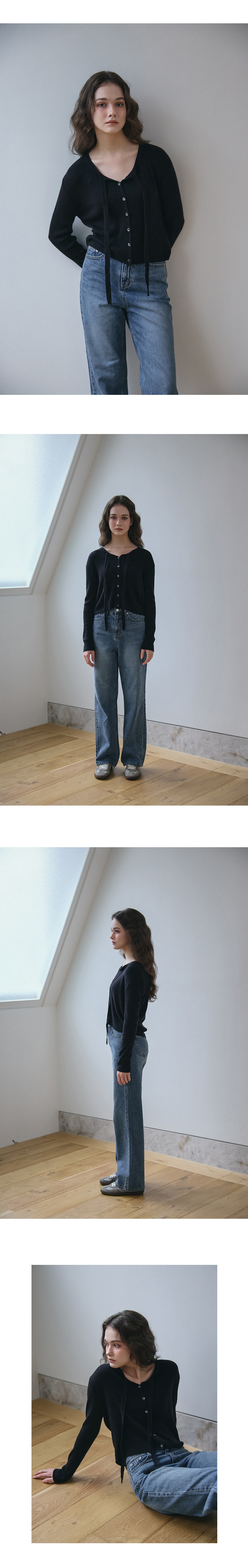 RIBBON TIE KNIT CARDIGAN_BLACK