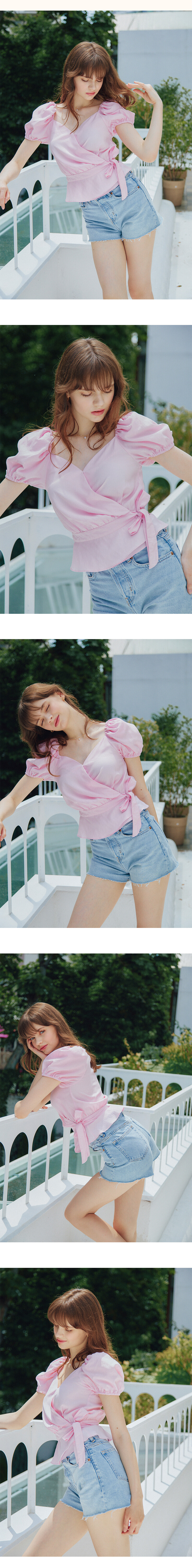 (REFURB) 70% WRAP DETAIL HALF SLEEVES BLOUSE_PINK