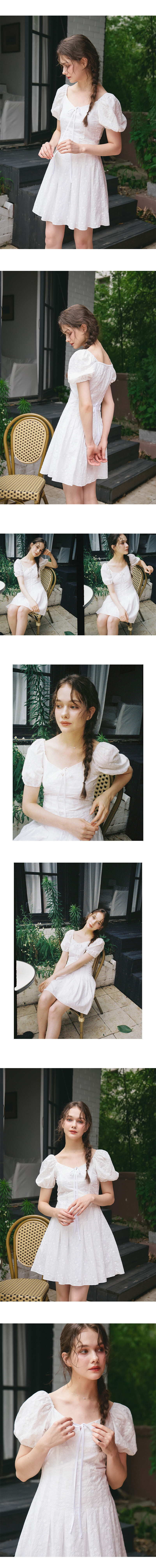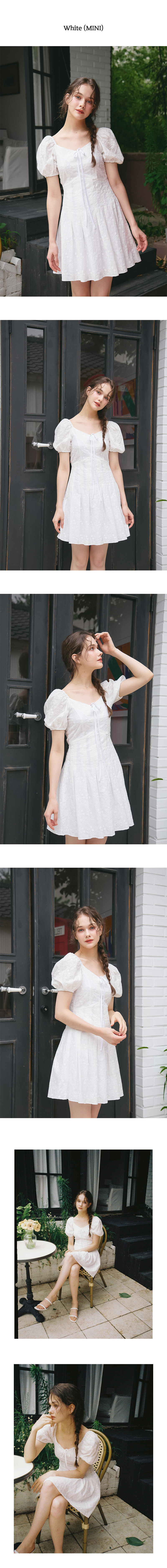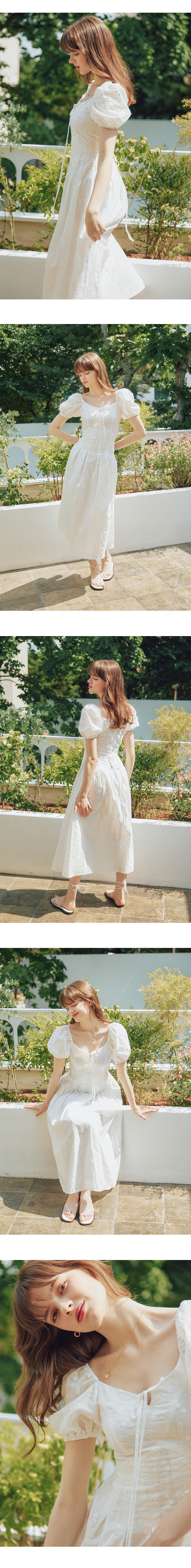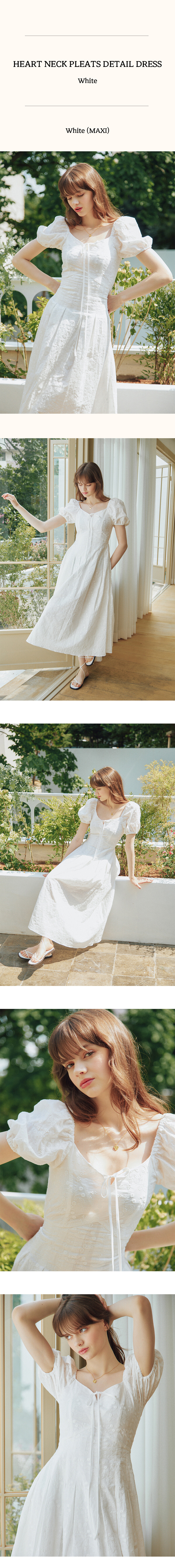 HEART NECK PLEATS DETAIL DRESS_WHITE