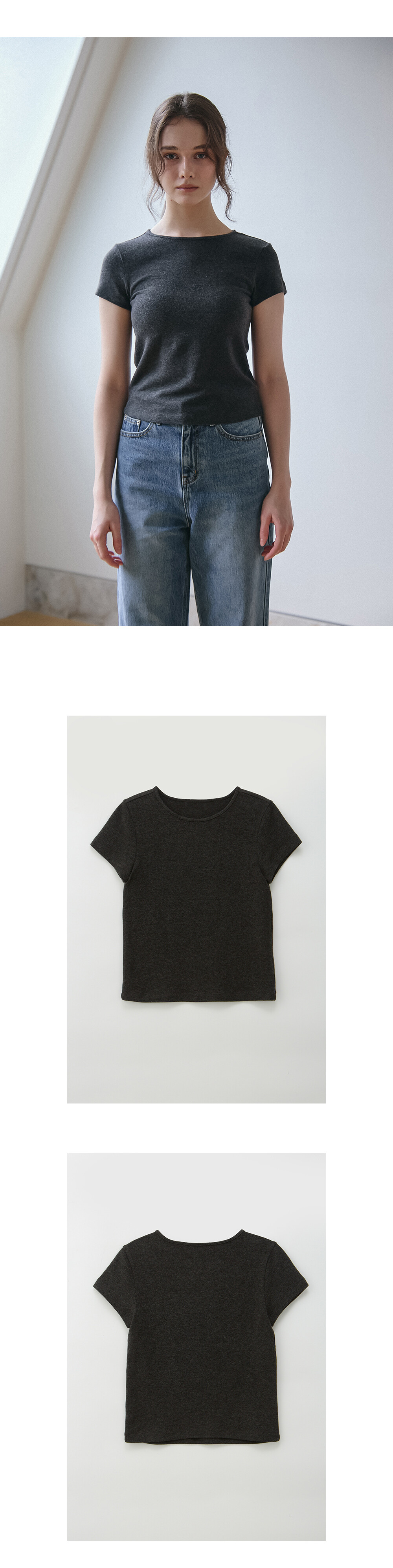BABY RIB HALF SLEEVES T-SHIRT_CHARCOAL