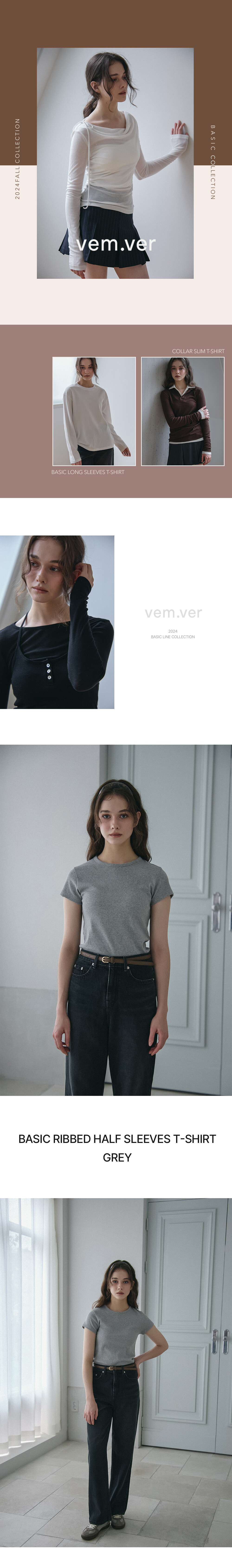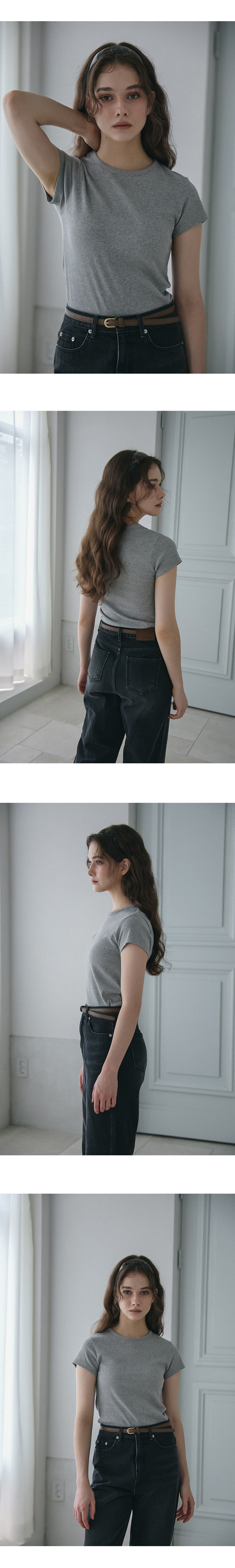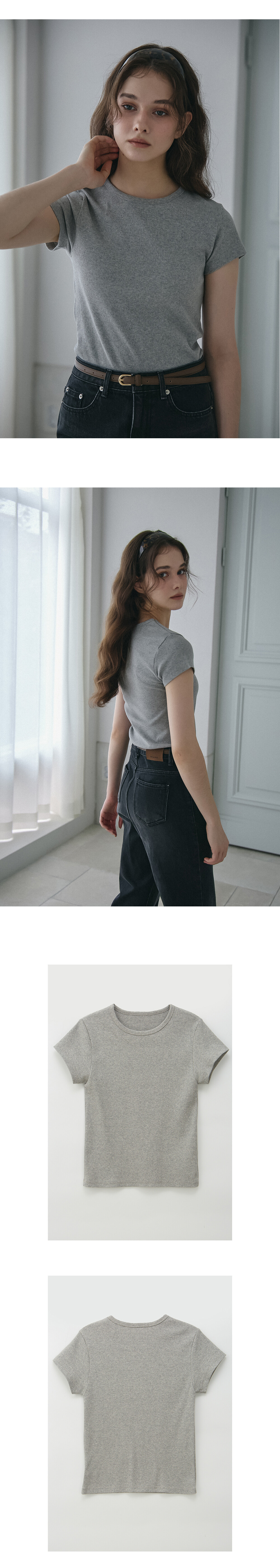 BASIC RIBBED HALF SLEEVES T-SHIRT_GREY