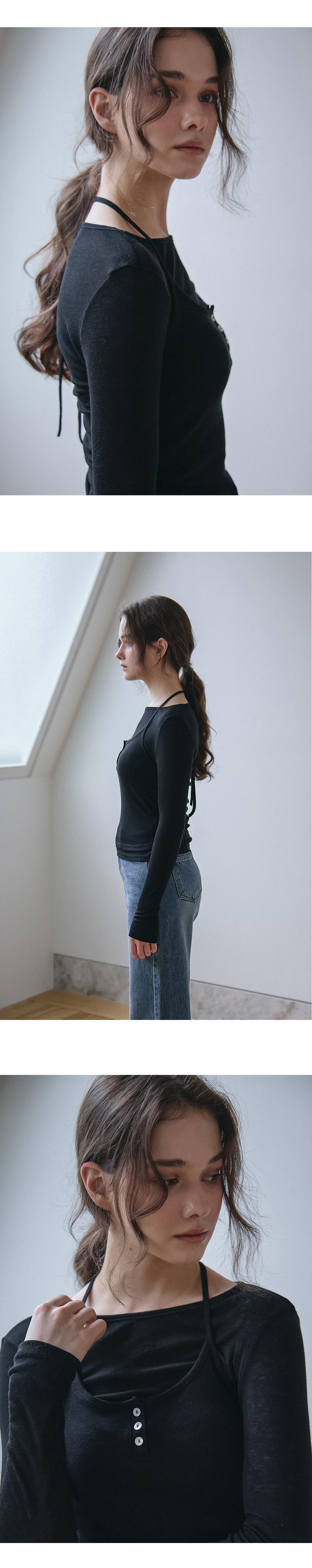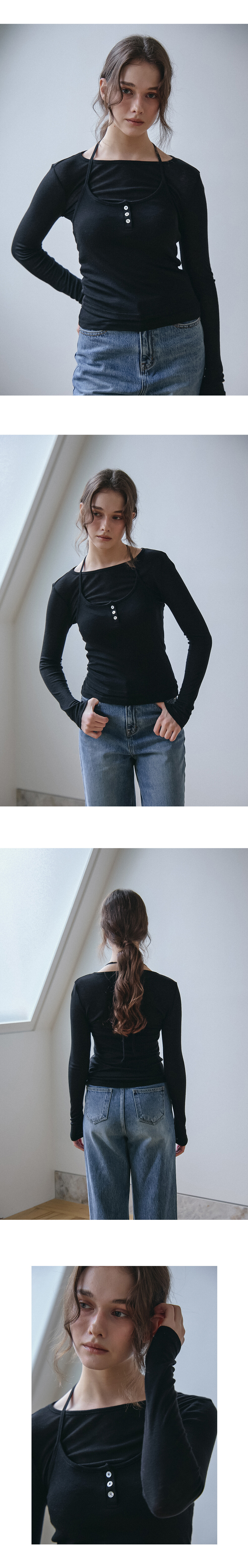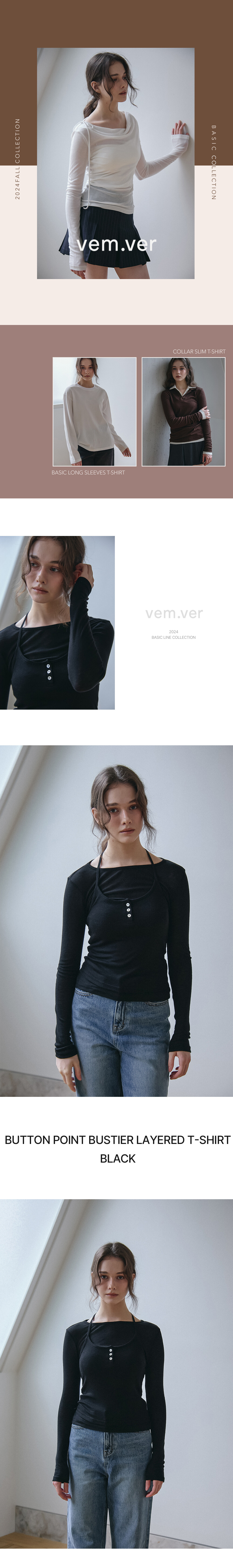 BUTTON POINT BUSTIER LAYERED T-SHIRT_BLACK