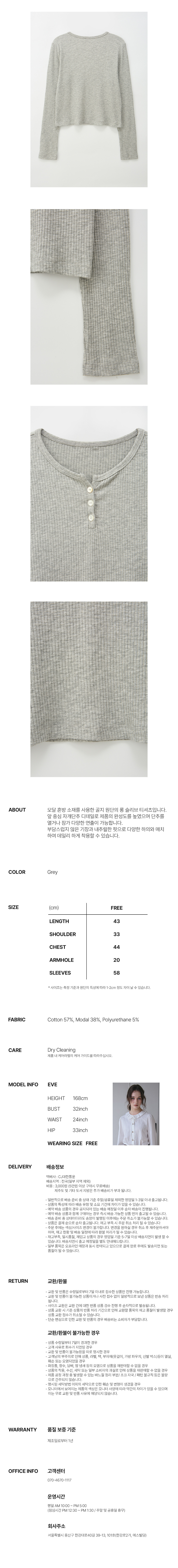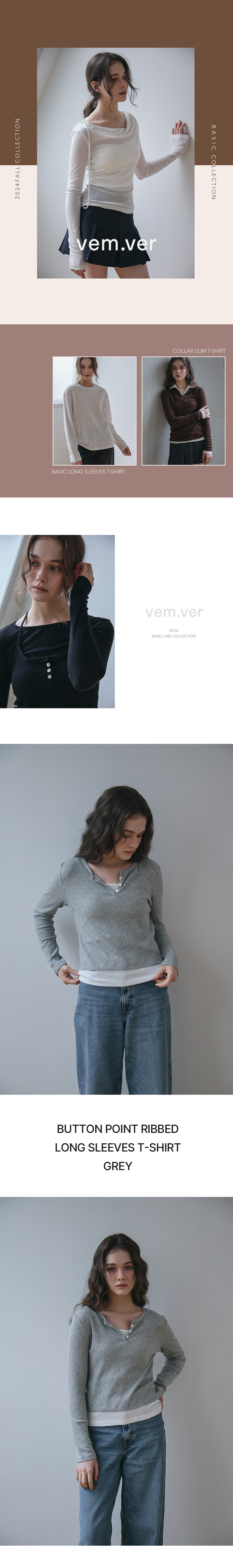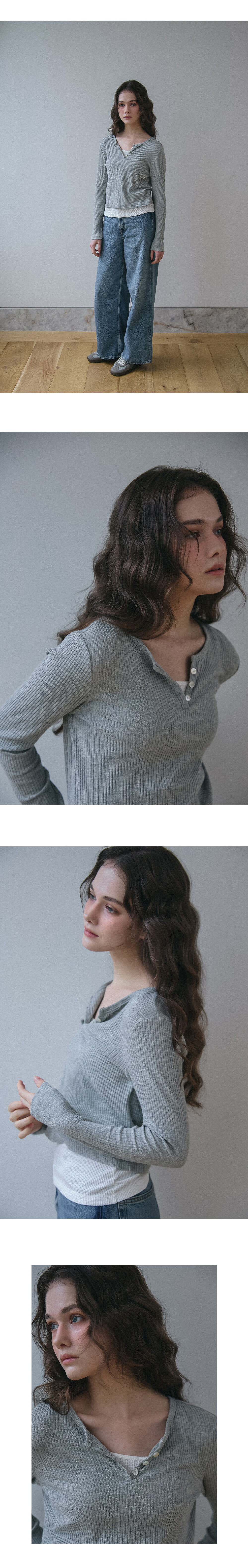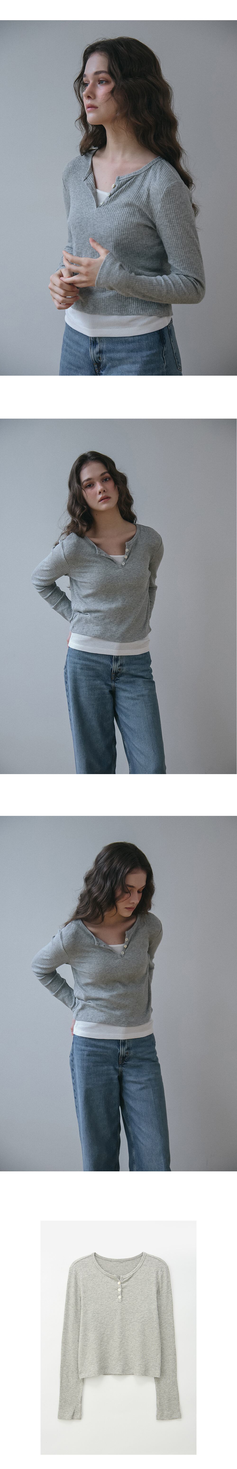 BUTTON POINT RIBBED LONG SLEEVES T-SHIRT_GREY