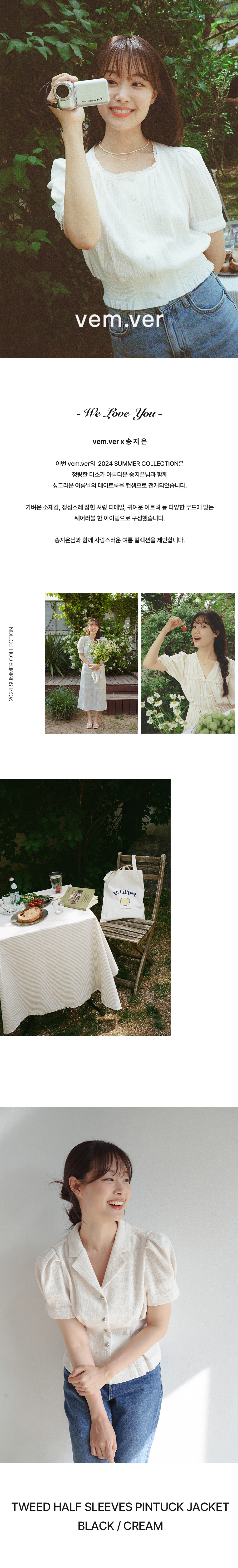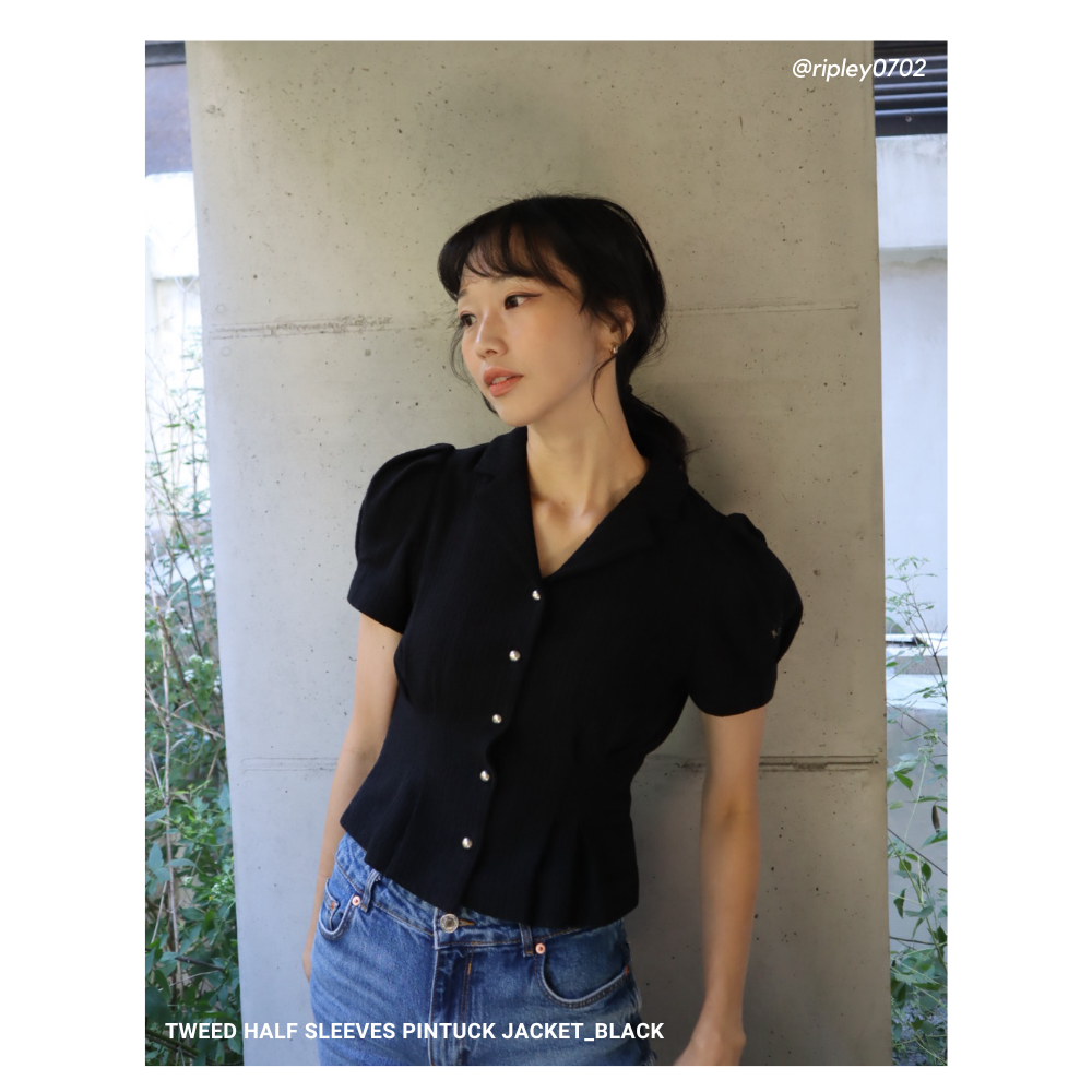 TWEED HALF SLEEVES PINTUCK JACKET_2COLOR
