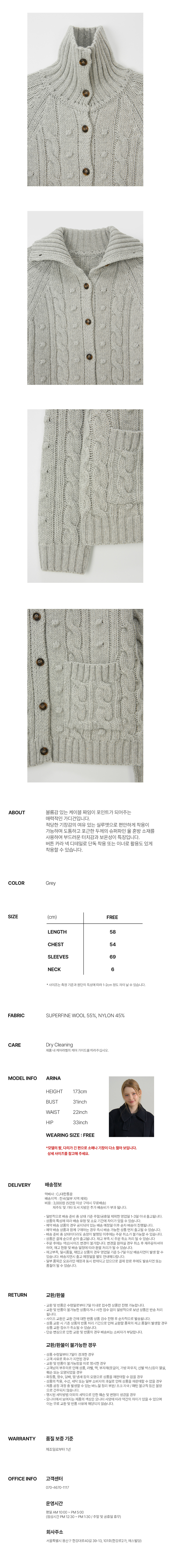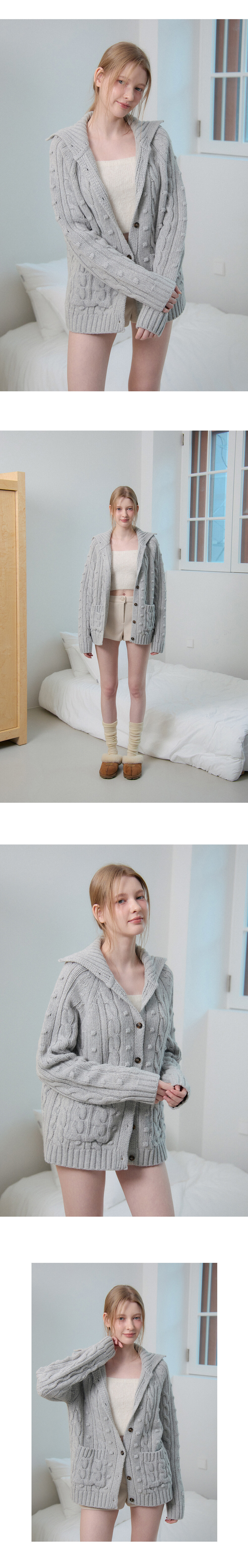 WOOL CABLE KNIT CARDIGAN_GREY