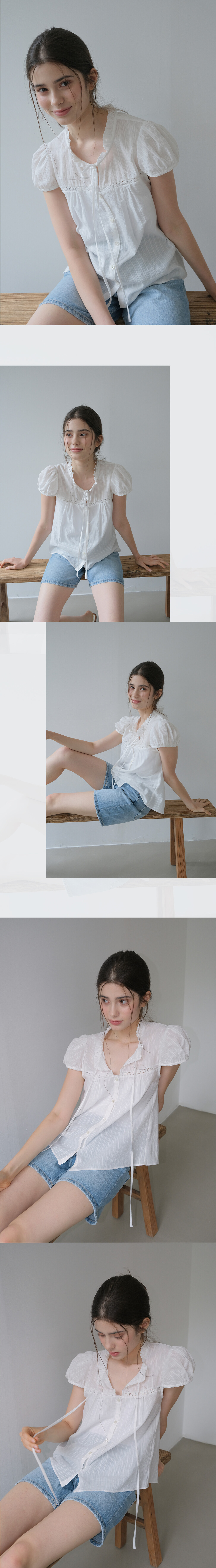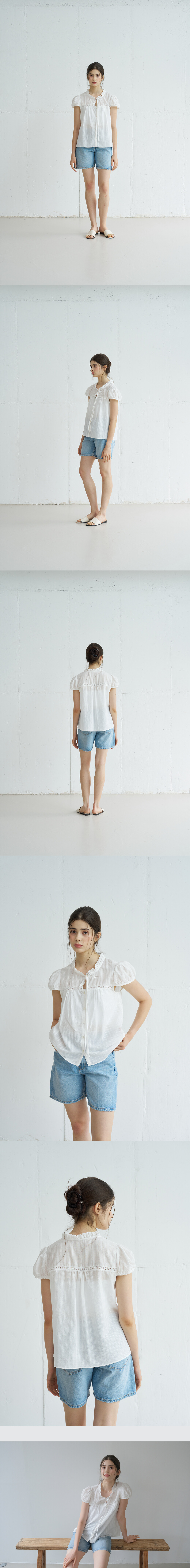 MINI RUFFLE LACE TRIM HALF SLEEVE BLOUSE_WHITE