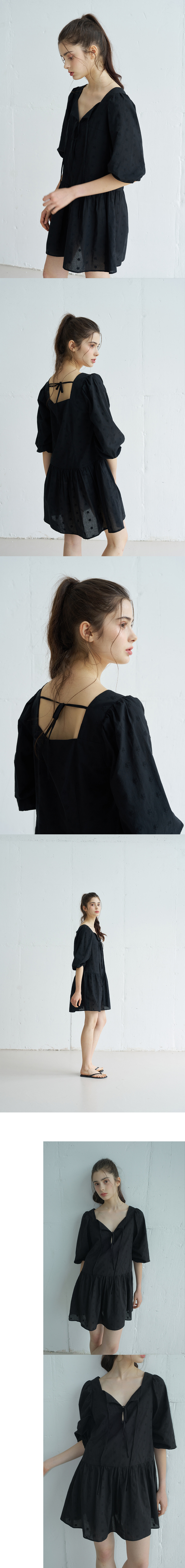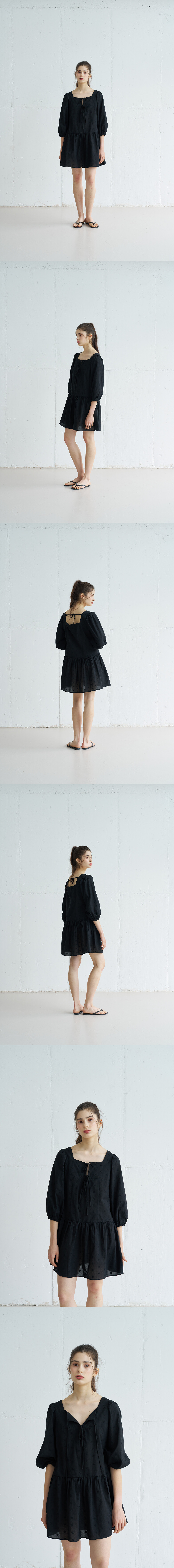 FLOWER EMBROIDERY RIBBON TIE DRESS_BLACK