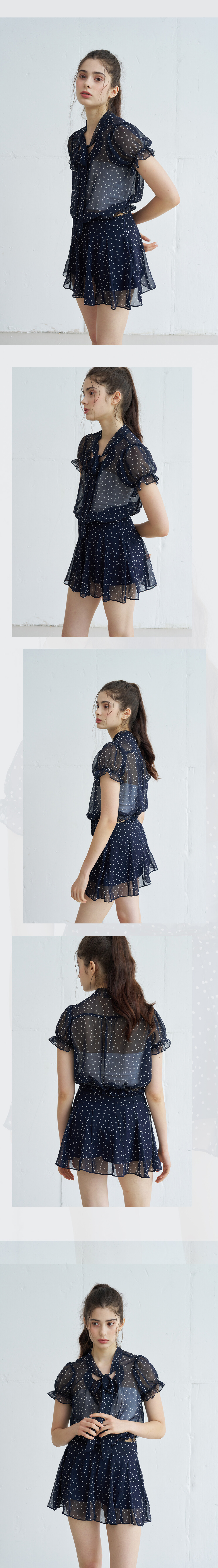 POLKA DOT FLARE MINI SKIRT_NAVY