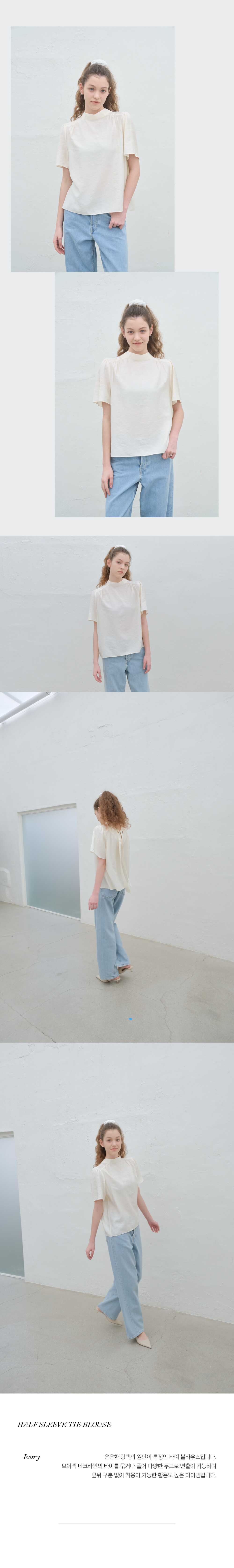 HALF SLEEVE TIE BLOUSE_IVORY