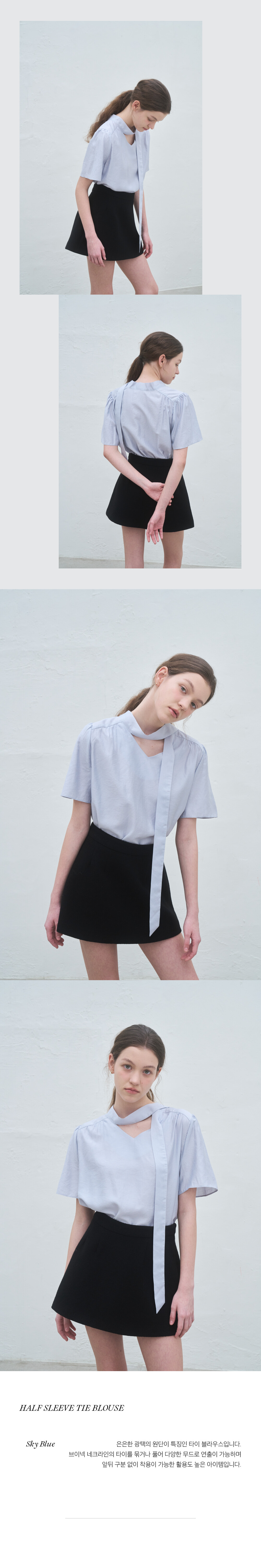 HALF SLEEVE TIE BLOUSE_SKY BLUE