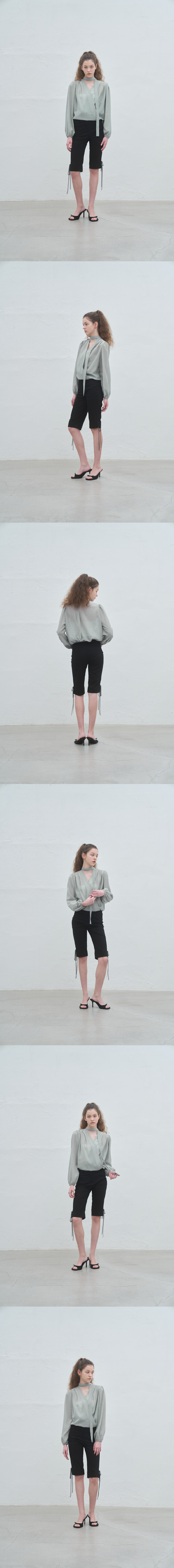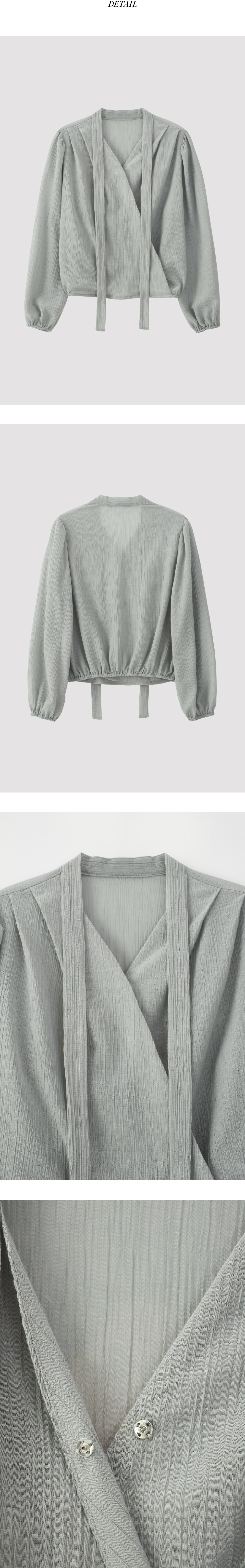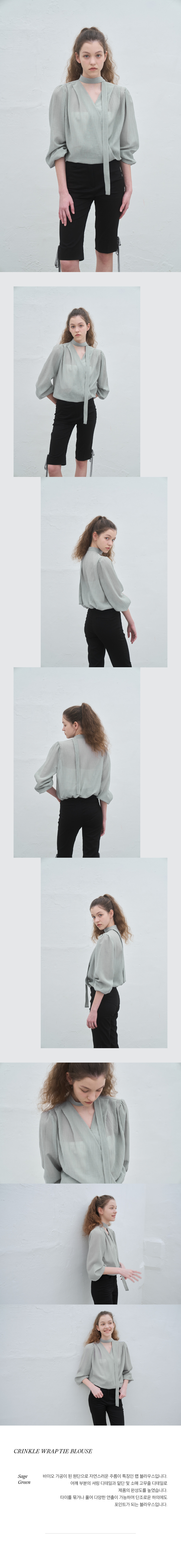 CRINKLE WRAP TIE BLOUSE_SAGE GREEN
