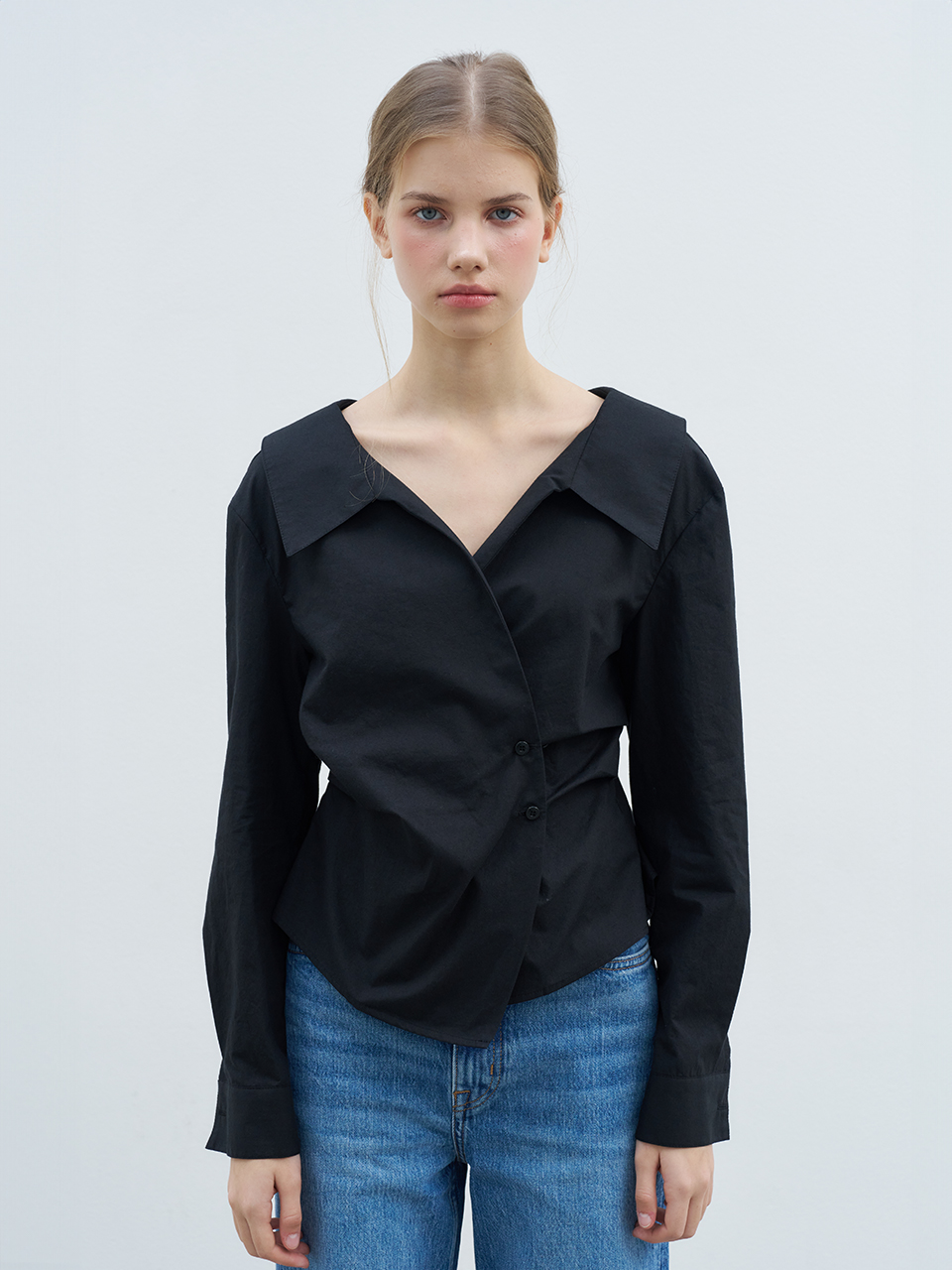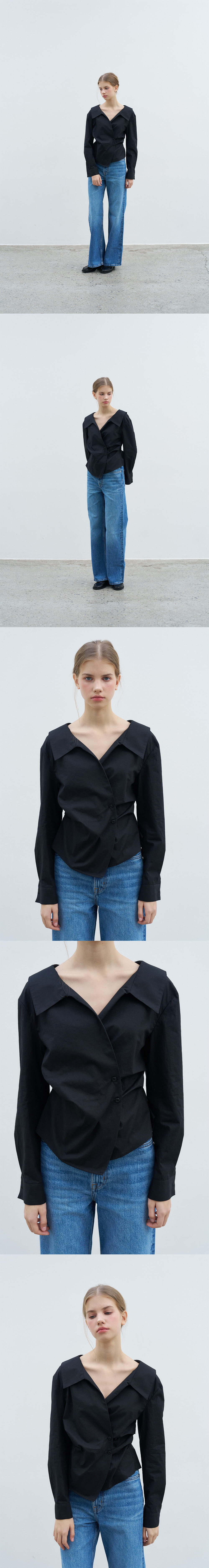COLLAR POINT WRAP BLOUSE_BLACK