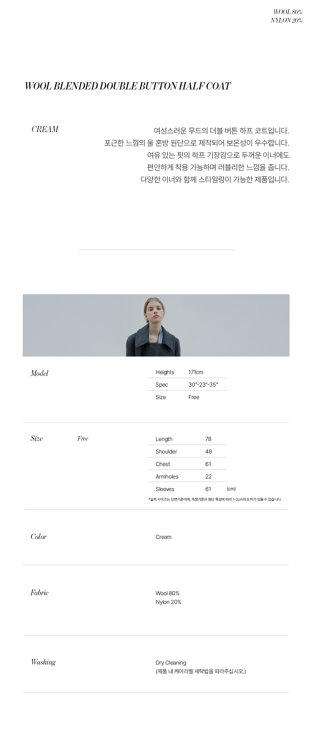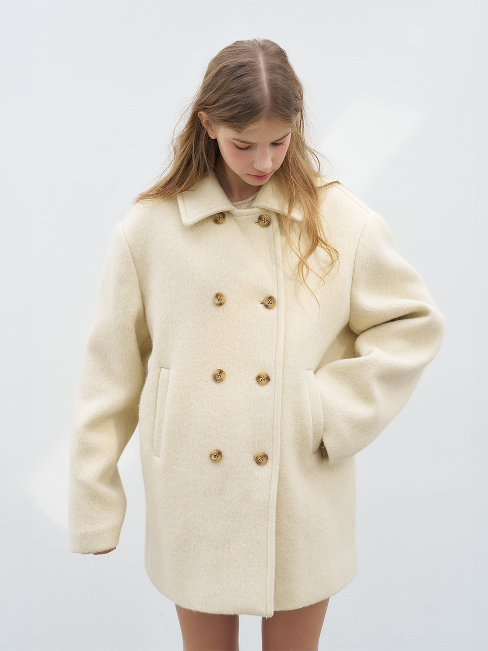 WOOL BLENDED DOUBLE BUTTON HALF COAT_CREAM