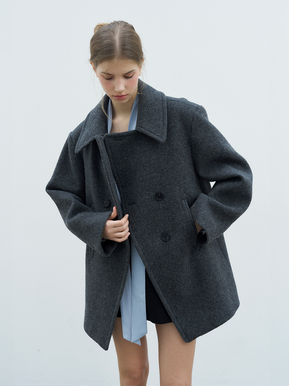 DOUBLE BREASTED BUTTON HALF COAT_CHARCOAL