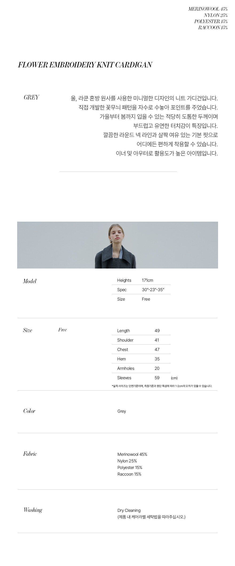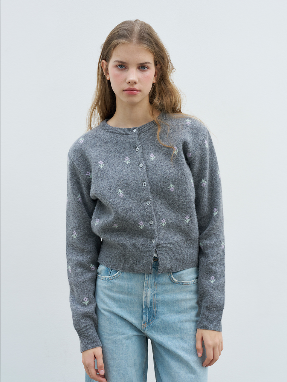 FLOWER EMBROIDERY KNIT CARDIGAN_GREY