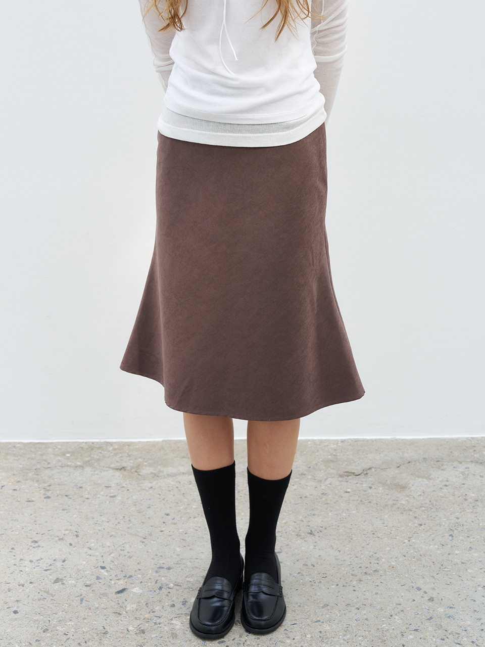 FLARE MIDI SKIRT_BROWN