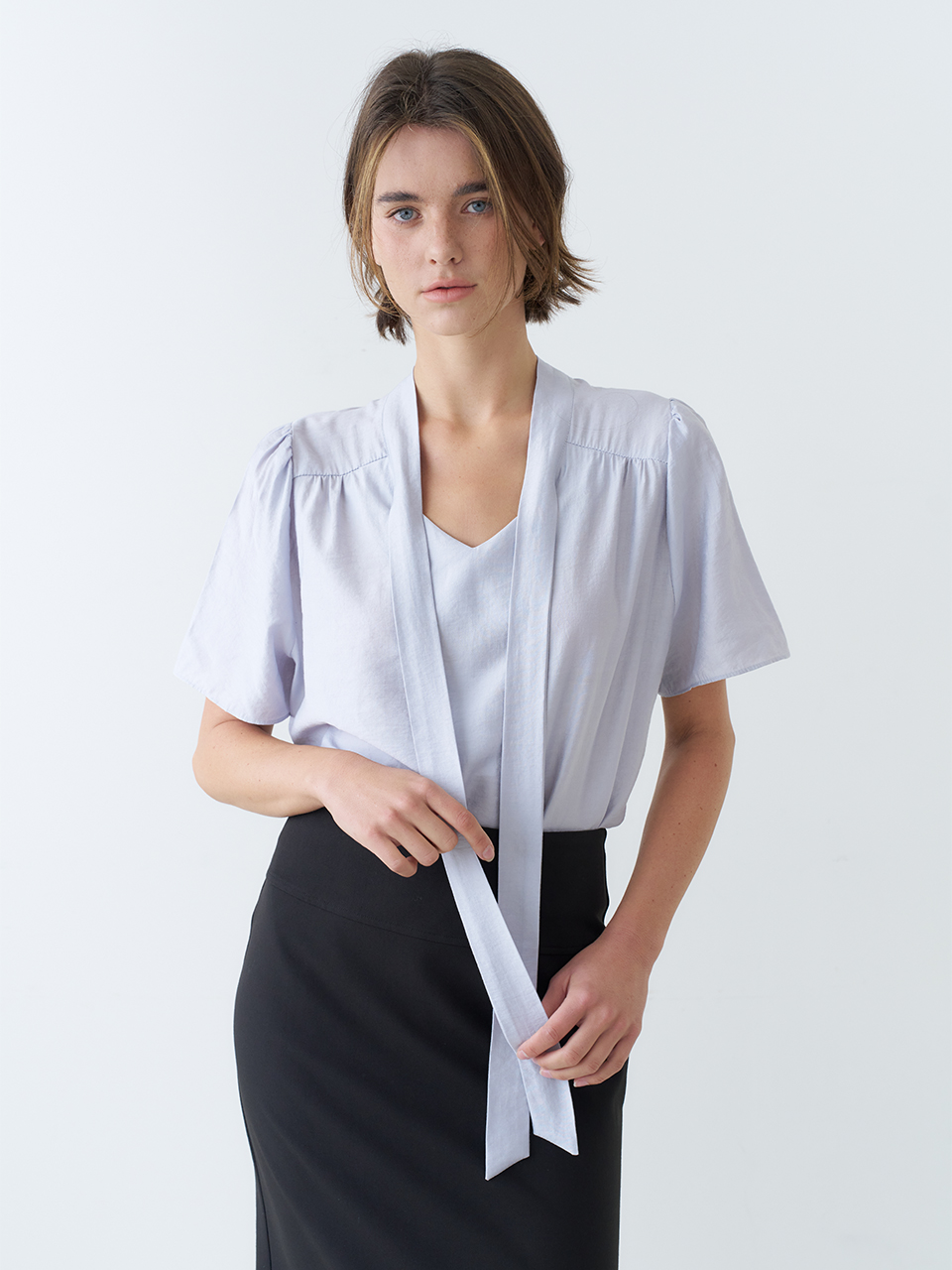 HALF SLEEVE TIE BLOUSE_SKY BLUE