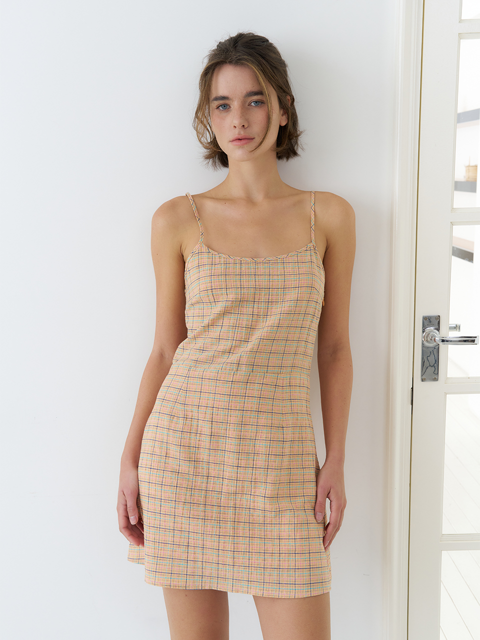 CHECK STRAP SLEEVELESS ONEPIECE_APRICOT